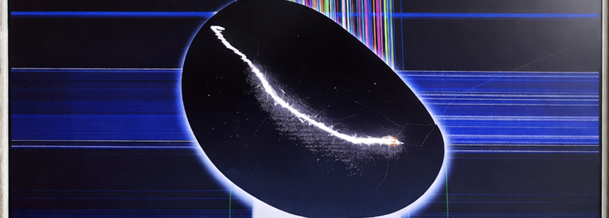 Opera realizzata attraverso un intervento diretto su schermi elettronici accesi, incisi manualmente, 55 x 34 cm